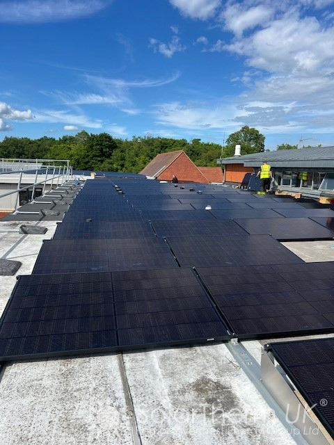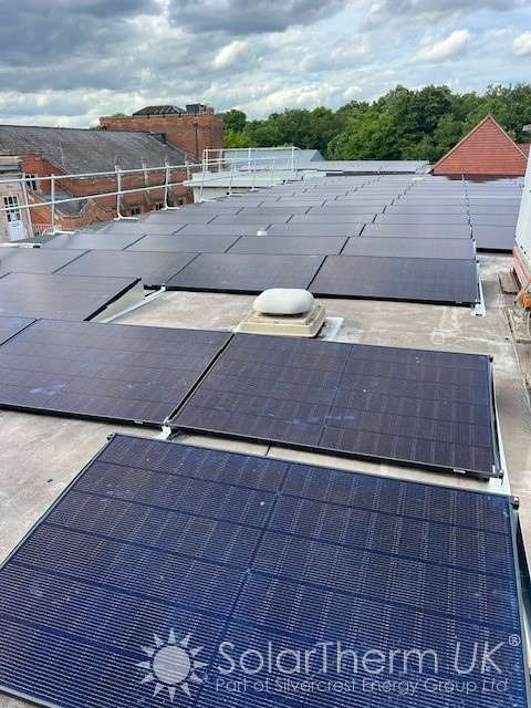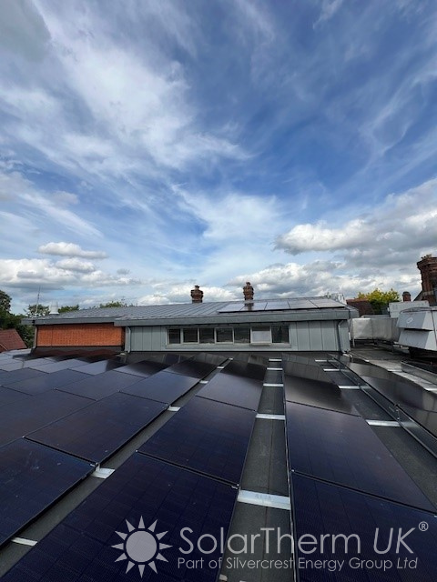 In 2023, Bancroft School approached SolarTherm UK with the ambition of utilising all available roof space for renewable energy, incorporating both solar PV and a solar thermal system. Following the successful installation of over 300 panels across the sports hall and swimming pool roofs, we returned in 2025 to complete Phase Two—adding a further 132 panels across a section of the school’s flat roof. A live monitoring portal is now displayed within the school, helping pupils understand how the systems work and allowing renewable energy to be incorporated into lessons and academic activities.